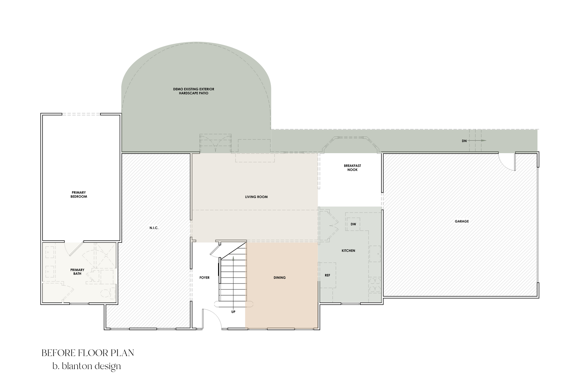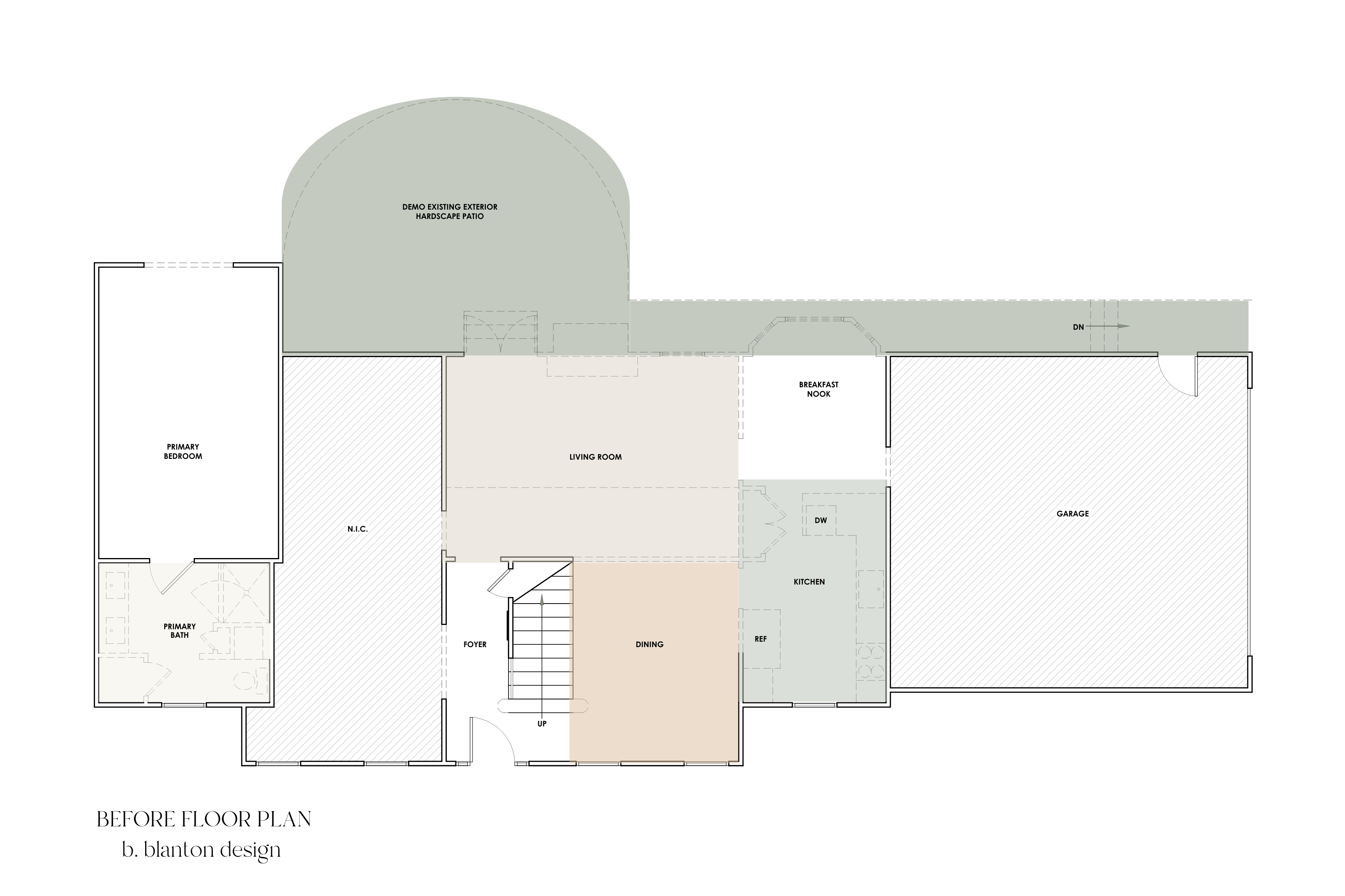 The original layout featured a limited outdoor connection, with a small hardscape patio that didn’t fully integrate with the home’s main living areas. The flow between the living room, kitchen, and backyard was constrained, leaving untapped potential for seamless indoor-outdoor living.