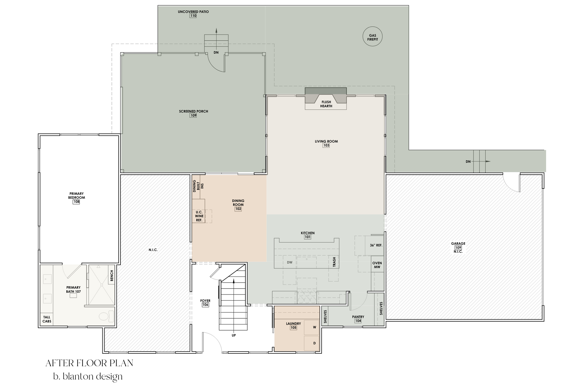 The new design transforms the home’s functionality and connection to the outdoors. A spacious screened porch and uncovered patio now extend directly from the living room, creating a natural, light-filled transition between interior and exterior spaces. Enhanced kitchen flow, added storage, and thoughtful gathering areas make the home ideal for entertaining and everyday living.